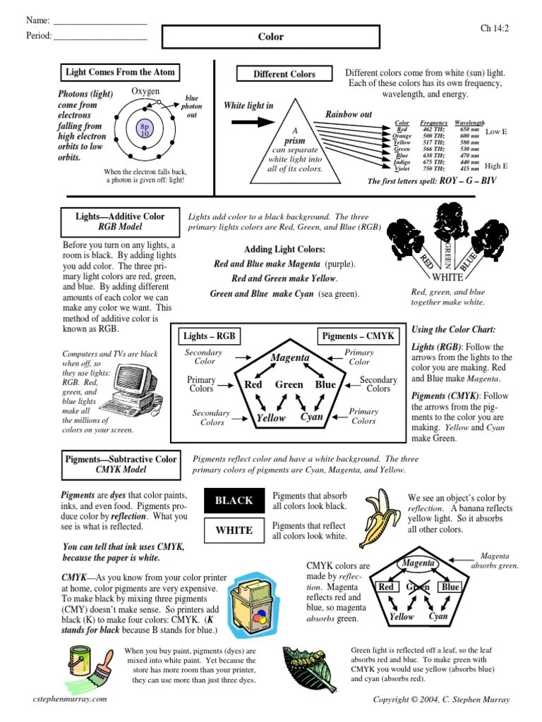 An answer key and differentiated versions are also available color worksheet answers. Wavelengths and frequencies of the electromagnetic waves including visible light, primary colors, .